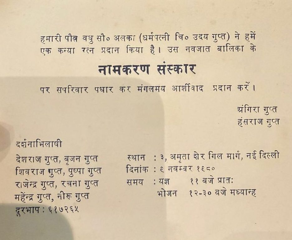I was often being told that my parents have decided my name to be “Medha/Mansi”, however, Babuji had invited Balasaheb Deoras as the Chief Guest of the Namkaran ceremony, which was held on 9th November, 1980 and I am told that when he came, Babuji asked him to grace the occasion by doing the honour of Namkaran and my name was hence called “Manissha” a gift from Balasaheb Deoras and my Babuji. In the hindsight, I am glad that he was there and did not accept the name proposed by my parents.